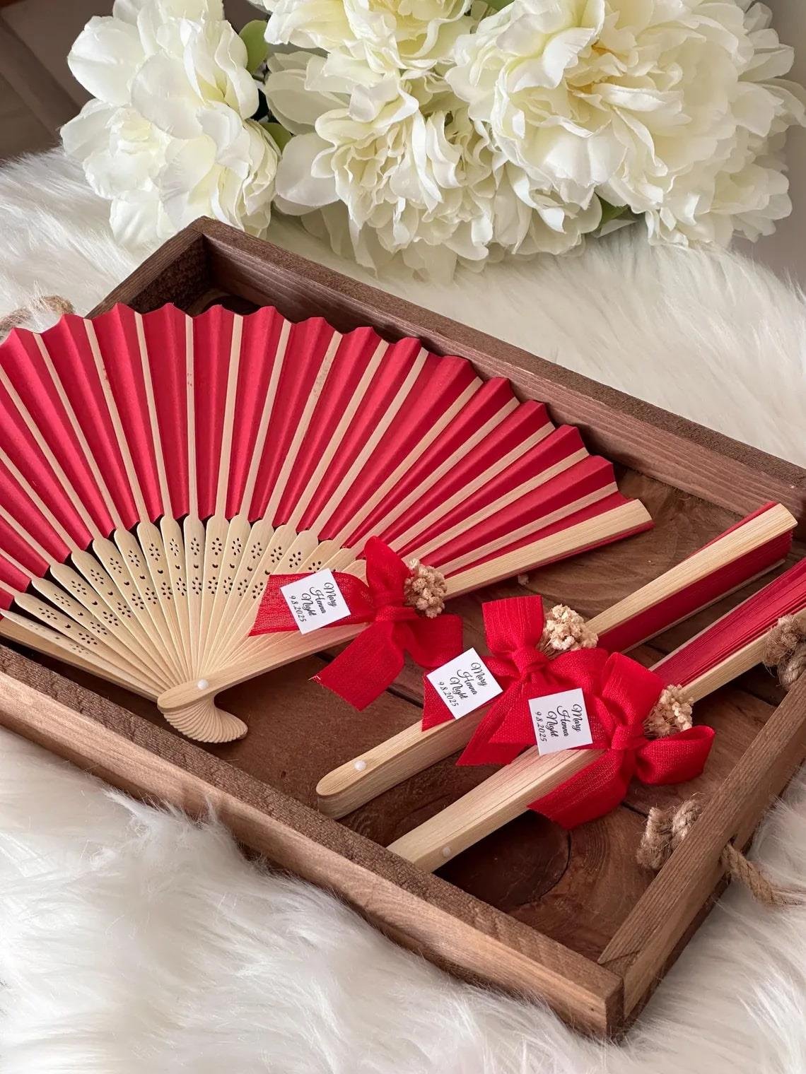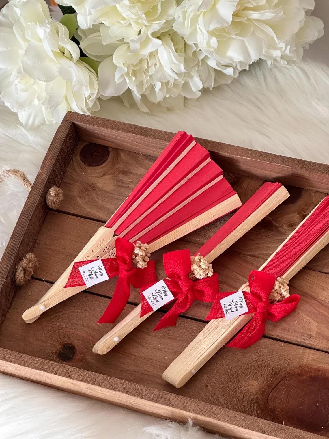 50 adet kırmızı yelpaze süslenmiş