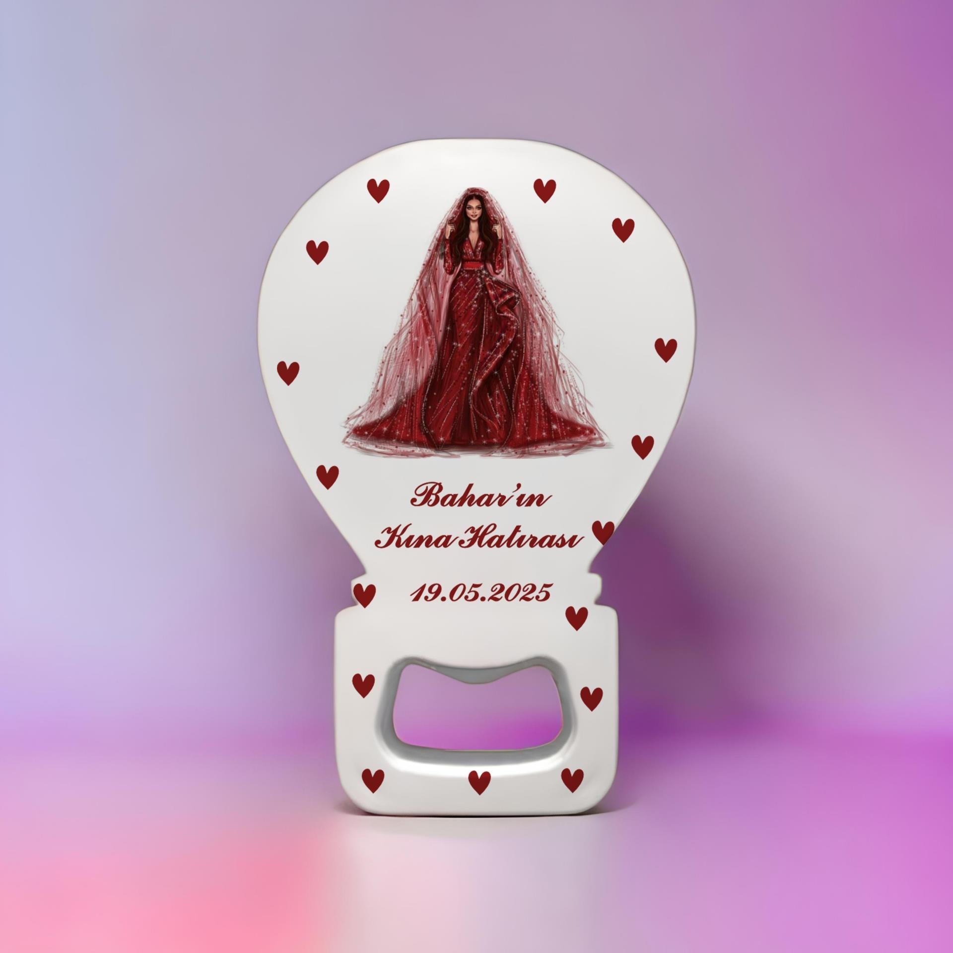 Kişiye Özel Kına Açacak Balon Magnet Kırmızı Gelinlik Duvaklı Modeli 15 Adet