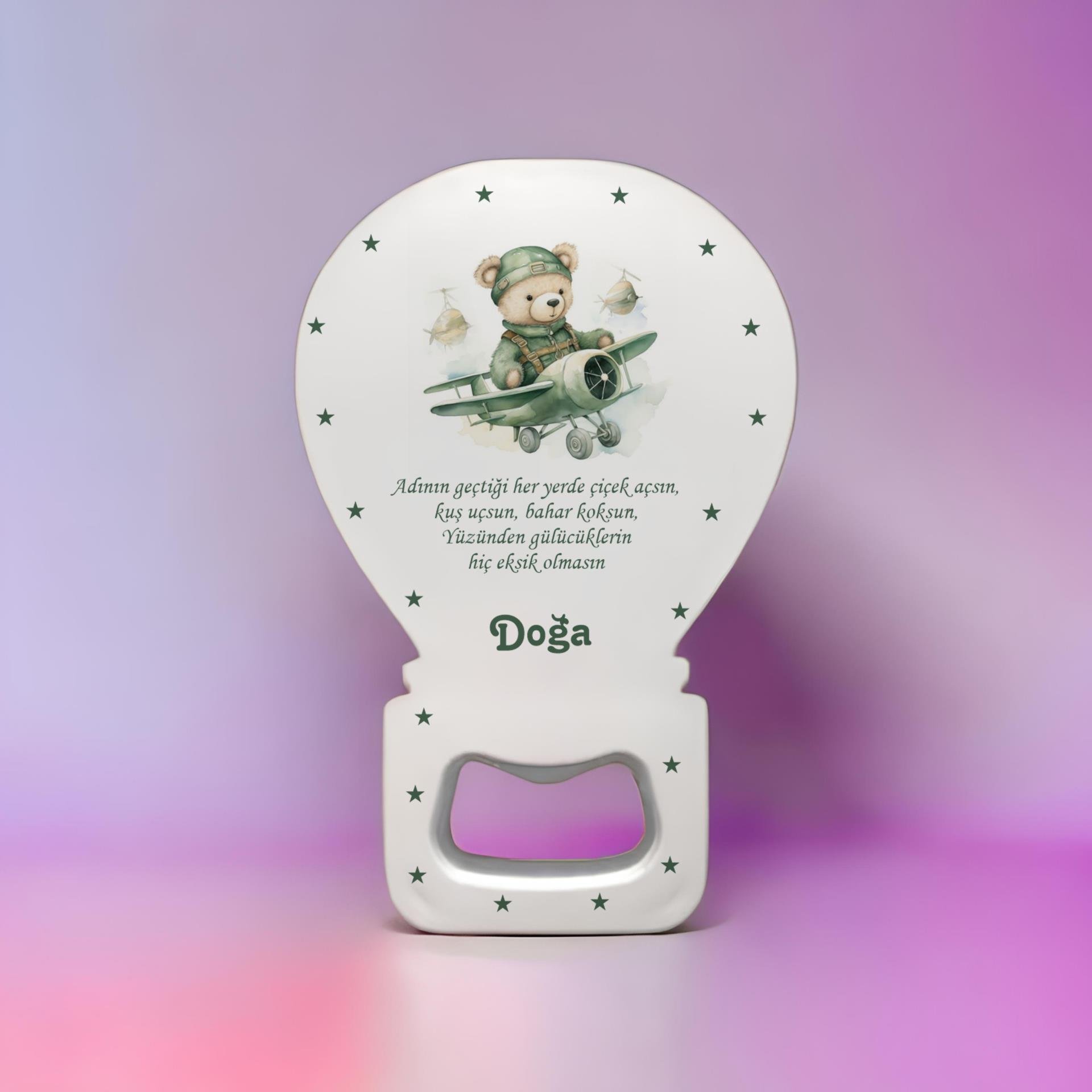Kişiye Özel Yeni Doğan Açacak Balon Magnet Yeşil Ayıcık Arabalı Model 15 Adet