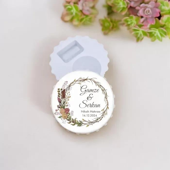 Nikah Hatırası Renkli Çiçek Tasarımlı Gazoz Kapak Açacak Magnet 15 Adet